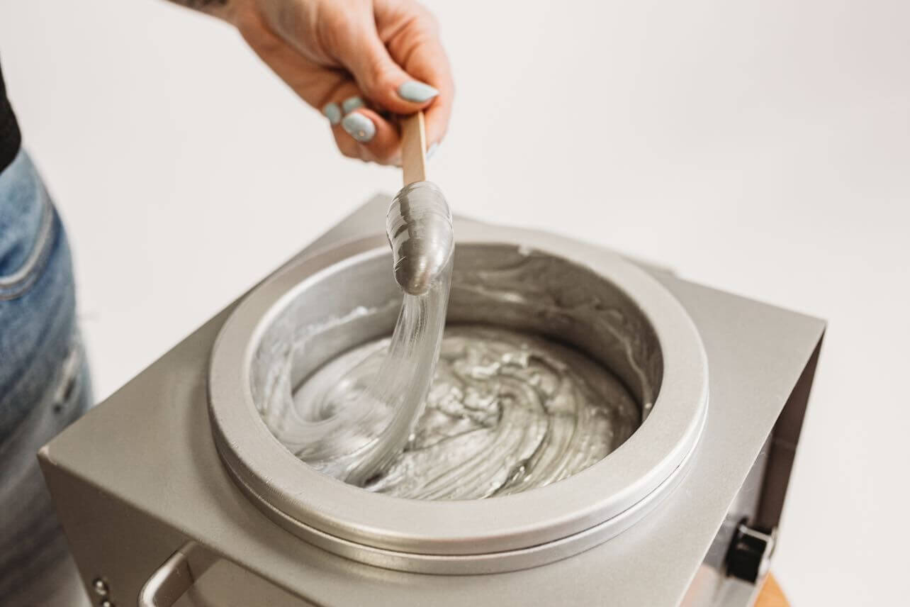 Before applying the wax to the skin, ensure it is not excessively hot. The wax should have a thick consistency similar to honey. If the wax appears too runny, it is overheated and can potentially cause skin burns.